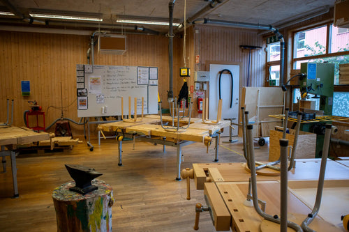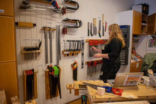 Nina tar emot i en nystädad, välordnad slöjdsal där verktyg