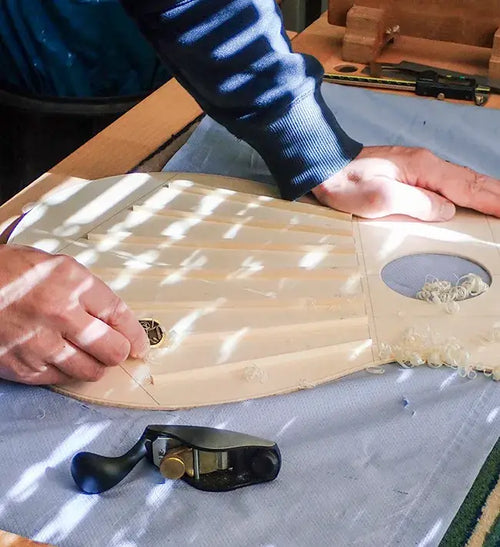 - I build according to the Spanish tradition. This means that the neck is glued to the top, then the sides, and finally, the back closes the box. I work with solid tops, hide glue, and finish with shellac. I like the old school, says Tobias.