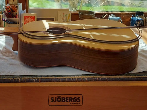 Today, Tobias Berg is also an ambassador for Sjöbergs, and he sees a bright future ahead. Soon he will be celebrating the manufacturing of his 150th guitar, marking yet another milestone on the road along the musical career path he has chosen to walk. A path that could have been very different had he listened to and trusted the proclaiming teacher. Fortunately for everyone, Tobias instead chose to follow his heart and go his own way.