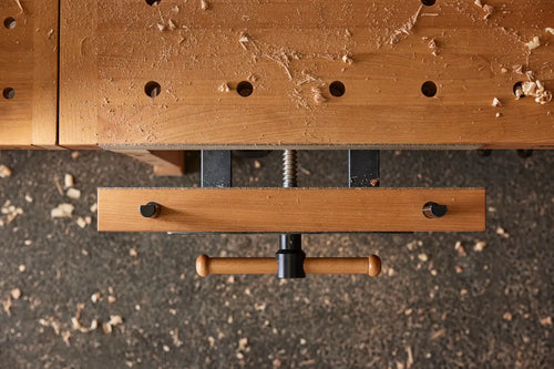 The Clamping Platform extends the bench by 480 mm. All the 19 mm diameter dog holes in the platform make the bench more flexible and suitable for most existing clamping systems on the market. You can fasten Sjöbergs Holdfast ST11 on both the top and the skirts around the Clamping Platform. It can also be used as a separate work surface by attaching it to a wall. The Platform is, as our Elite benches, made of solid European beech and treated with a first class natural oil.